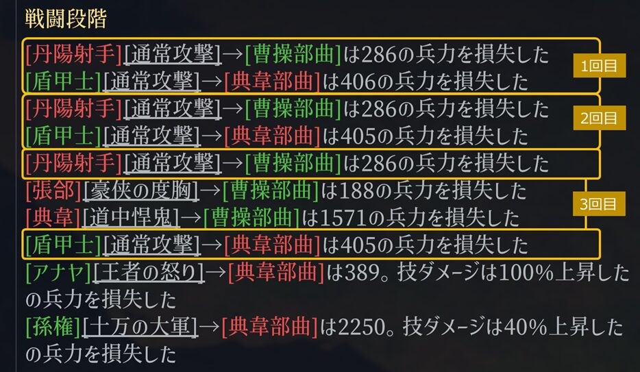 - 挟み撃ちをした場合の敵方へのダメージを計上