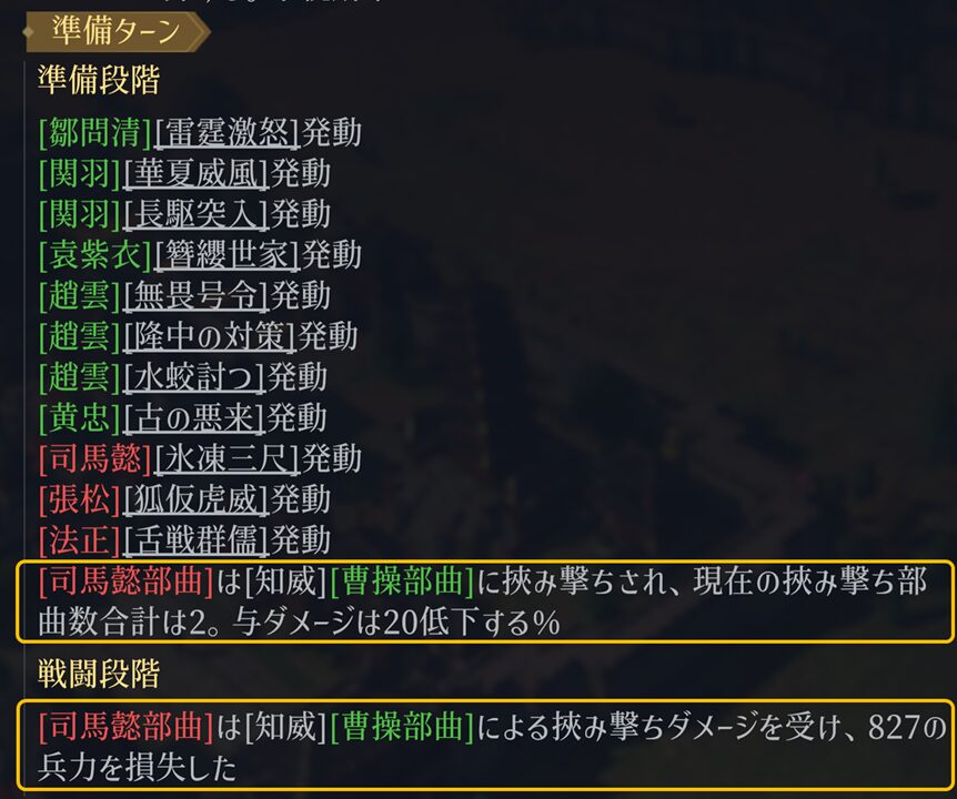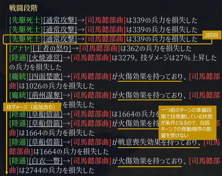 - 各ターンでの指揮技と主動技が発動(知己効果も含む)